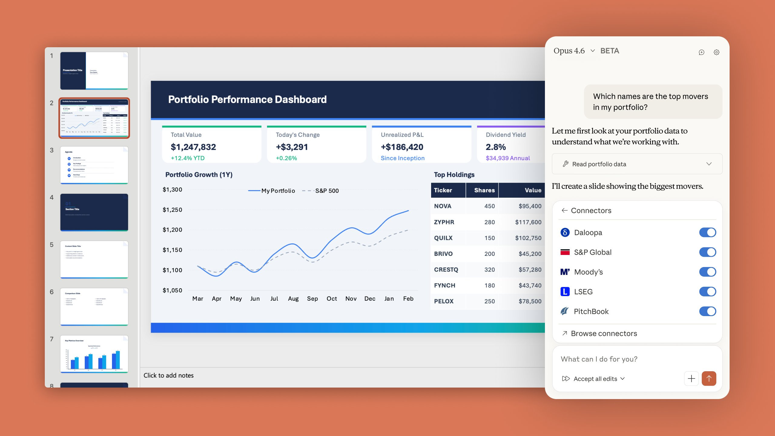 Connections already set up in your Claude account carry over to Excel automatically. For finance teams embedded in spreadsheet workflows, this removes the last manual handoff in the process.