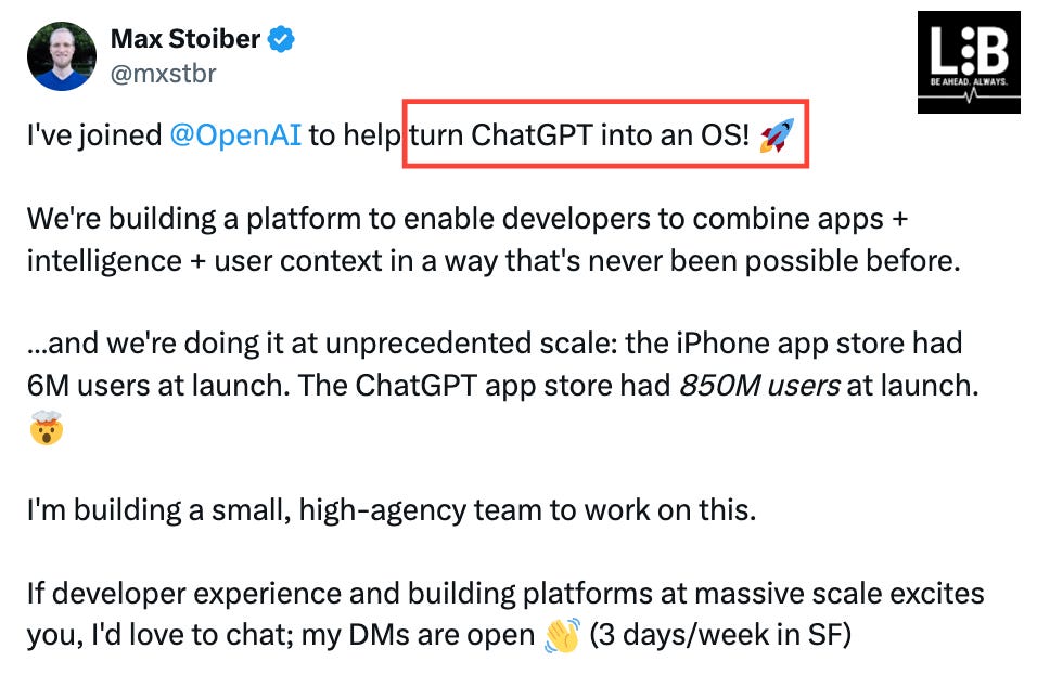 The biggest ignored news 🤷♂️ The world’s most valuable startup OpenAI just hired Max Stoiber to [officially] turn ChatGPT into an OS, and nobody seems to be paying attention.