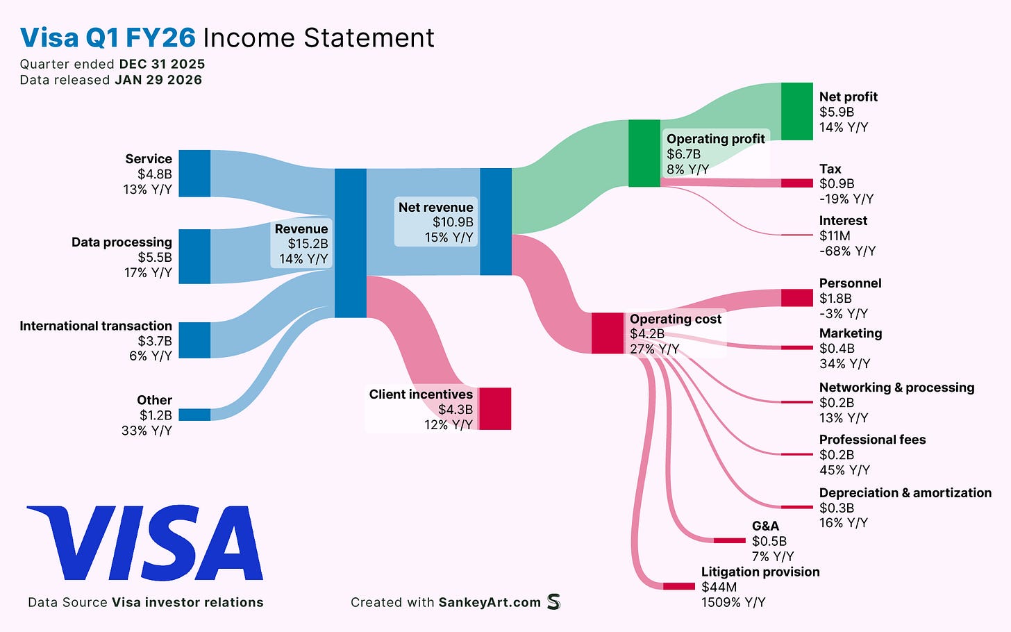 Good day & happy Wednesday! Today, all eyes are on two of the most powerful companies in payments, as we’re going to dive deep and break down the latest financials of Visa (breaking down the most important Q1 2026 financial facts & figures, understanding what they mean, and what’s next for Visa), and Mastercard (deep dive into their Q4 2026, what stood out and whether Mastercard is worth your time & money in the years to come). So let’s jump straight into the interesting stuff 🌶️