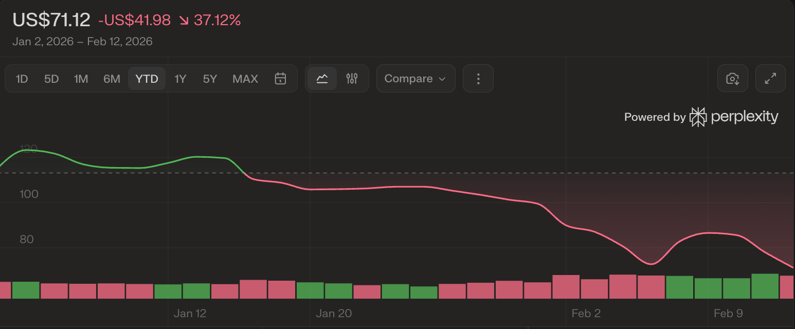 Earnings time 🤑 Robinhood’s HOOD 0.00%↑ stock is down more than 37% year-to-date, over 50% off its October 2025 high of $152. A Q4 revenue miss ($1.28 billion versus the $1.34 billion consensus), a 38% YoY drop in crypto trading revenue, and a broader Bitcoin selloff have cratered sentiment. Analysts are now slashing price targets. The narrative has flipped back to crypto-dependent casino 🥶