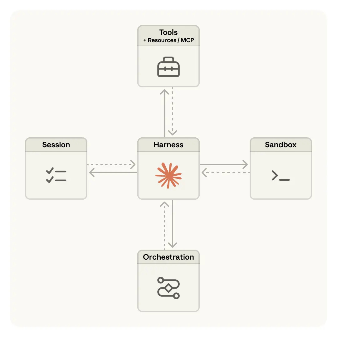 The architecture splits cleanly into three layers: a stateless “brain” (Claude plus the orchestration harness), disposable “hands” (sandboxes that can fail and be re-provisioned without data loss), and a durable session log that lives outside both. If the harness crashes, a new one calls wake(sessionId) and picks up where the last one stopped.