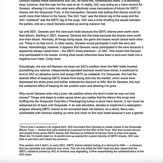 3AC then borrowed more money from Genesis collateralized by Grayscale shares to buy more Grayscles shares from Genesis 🤯🤯🤯