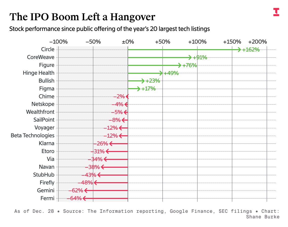 Klarna (September 10), Chime (June 12), eToro (May 14), Gemini (September 12), Bullish (August 13), Circle (June 5), and other FinTech unicorns finally went public. This newsletter tracked this arc relentlessly throughout the year, delivering deep dives and quarterly report analyses.