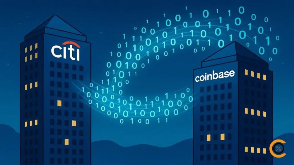The news 🗞️ Banking giant Citigroup C 0.00%↑ and crypto titan Coinbase C 0.00%↑ just announced a strategic partnership that marks a significant milestone in the convergence of traditional banking and digital assets.