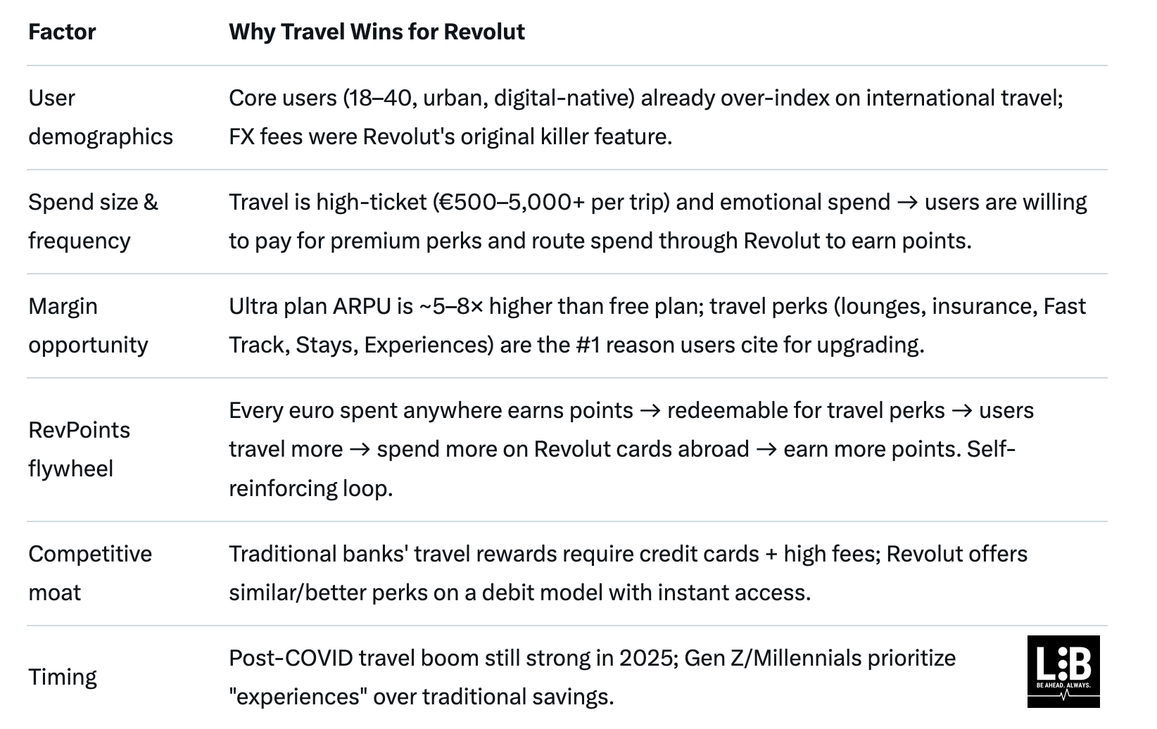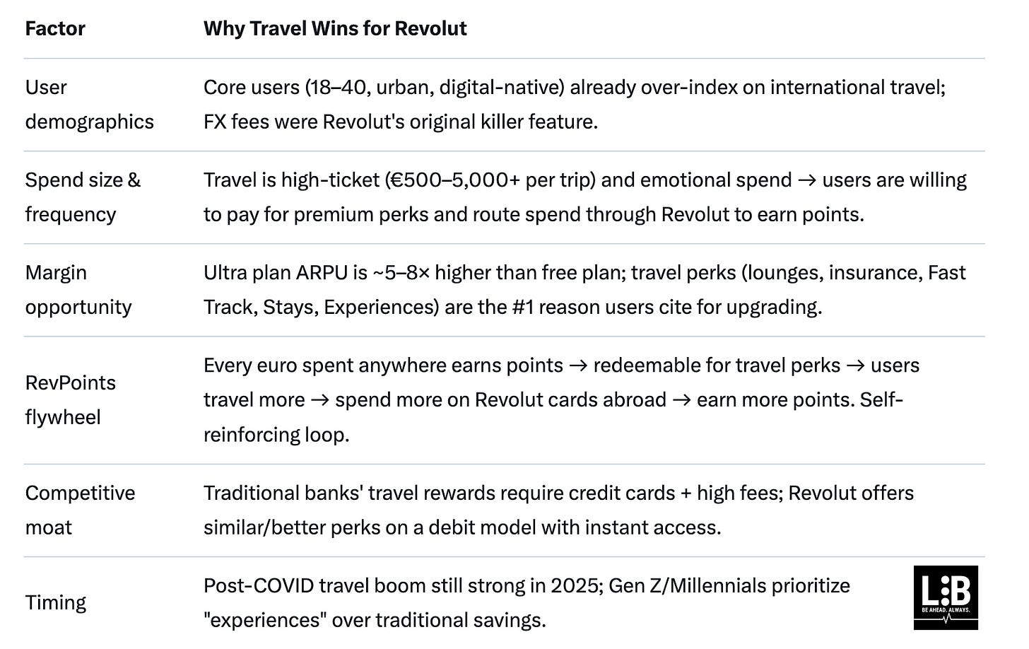 More on this 👉 First and foremost, we must note that these developments represent strategic execution rather than opportunistic feature additions. With Revolut customers spending over £20 billion on travel in 2024 alone, the company has identified travel as a critical avenue for deepening customer relationships and driving subscription upgrades.