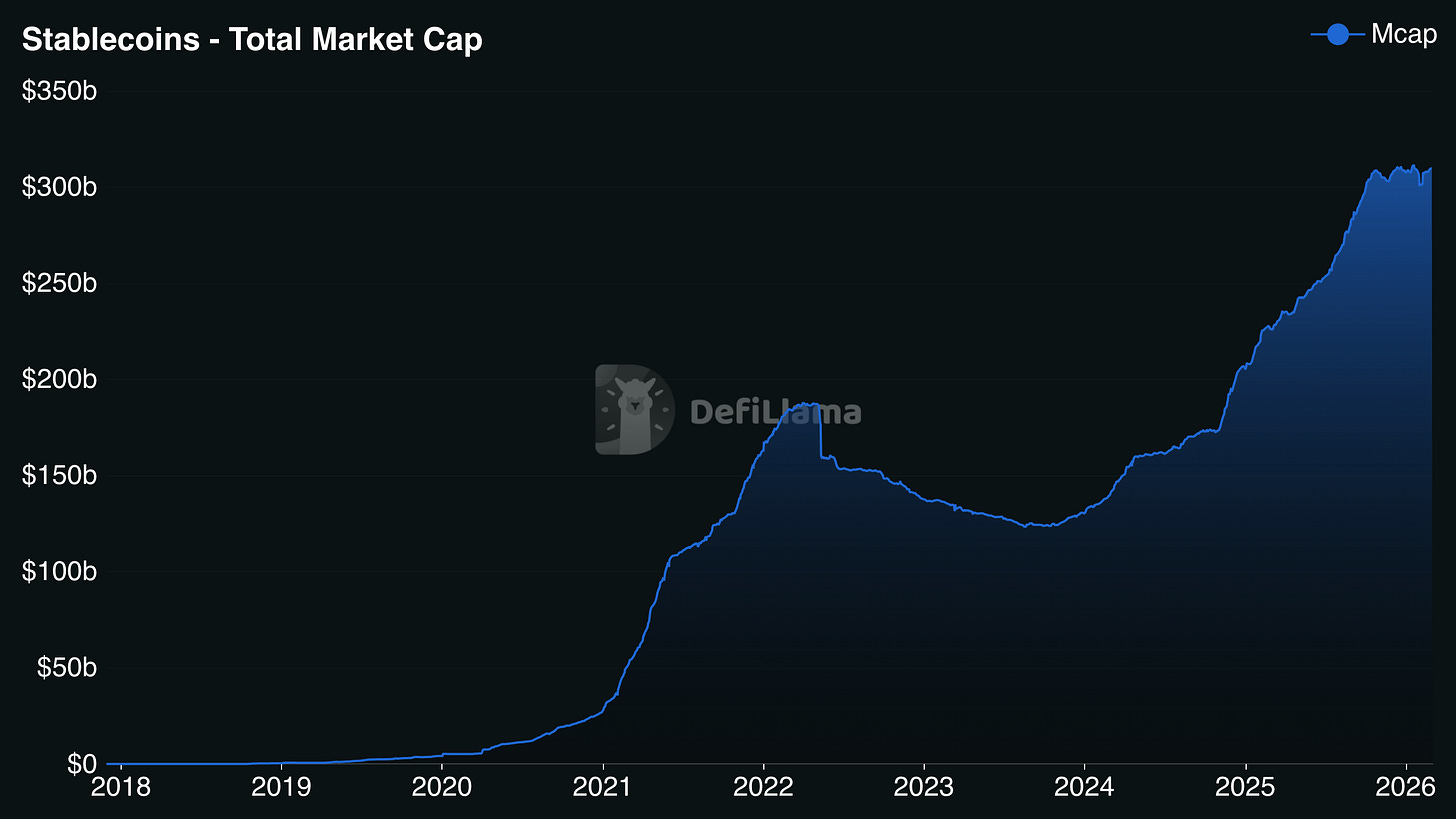 The regulatory picture has also flipped. Trump signed the GENIUS Act last July, giving stablecoin issuers a federal framework. Stablecoin supply passed $300 billion in 2025. Transaction volume hit $33 trillion. Visa and Mastercard are already both on board.